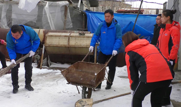 據(jù)了解,鄭春平是一名擁有50多年黨齡的老黨員,老伴因腦出血癱瘓在床15年,無固定收入,生活十分貧困。得知這一情況,黨小組決定開展幫扶活動。隊伍到達(dá)前,老人便早早地在家門口等候,面對攜帶御寒衣物和米面等生活物資的志愿隊員們,老人哽咽著連連說道“感謝黨啊”!通過詢問,大家進一步了解了老人的生活情況及其老伴的身體狀況,并鼓勵他一定要樹立信心,在組織的關(guān)懷下,共同渡過難關(guān)。老人對黨組織的關(guān)懷表示感謝,也表示了一定會堅定信念戰(zhàn)勝困難,言談舉止展現(xiàn)了一名老黨員的風(fēng)采,樂觀的生活態(tài)度感染了在場的每個人。隨后,志愿隊員們幫助老人清理了院內(nèi)的積雪和雜物,瑟瑟的寒風(fēng)抵擋不住大家的熱情。通過實際行動,不僅為老黨員送上真情和關(guān)愛,更展現(xiàn)了企業(yè)的人文關(guān)懷,進一步增強了黨組織的凝聚力。