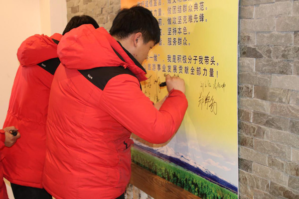 在長白山北景區(qū)黨支部積極分子都慶的帶領(lǐng)下,進(jìn)行了“我是積極分子,我?guī)ь^”宣誓活動(dòng)。